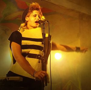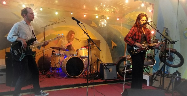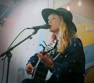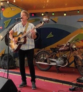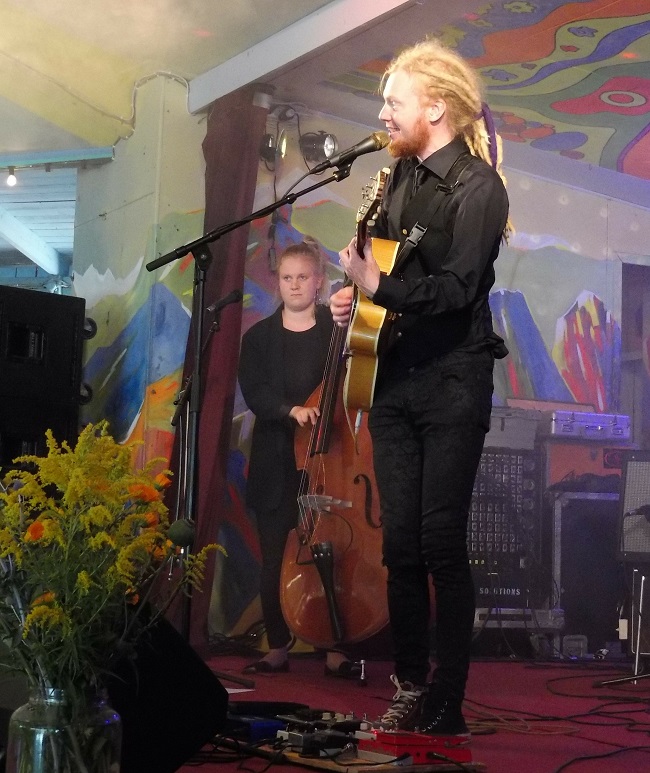 Varje timme byts det spelplats och ett nytt band går på. Det är dags för Christina Kjellsson ute på Joddelero. Christina visar sig vara en vissångare av rang. Hennes sånger är som små filmer där man ser allt väldigt klart för sig. Hon är rolig och sångerna är snillrika guldkorn. Jag kommer att tänka på såväl Cornelis som Jeja Sundström när hon öser på. Ser du hennes namn på någon viskväll ute i landet så måste du ta chansen att höra henne.