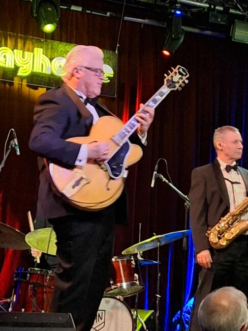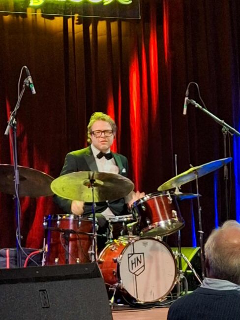 Underrubriken lyder ”en resa mellan klassiskt och jazz” . Tonsättaren som bjöd in träffade jag på jazzkrogen Utopia, ett stenkast från 1700-tals byggnad där programmet genomförs inför de femtio åhörare man har kapacitet för att ta emot. Den är en speciell känsla att träda in i denna kulturminnesmärkta interiör. Haft förmånen att ha varit här på minnesvärda konserter minst tre gånger senaste åren plus att jag genom VR-utrustning i hemmet såg Folkteaterns magiskt flerskiktade produktion av Dödsdansen inspelad i samma rum. Programmet denna söndagseftermiddag pågår halvannan timme, vilket känns alldeles lagom. Resonansen från de fem akustiska instrumenten var ypperlig. Som framgår av mina bilder satt publiken på stolar i ring runt utövarna. När man blir bjuden bör man om evenemanget i fråga exalterade utöver det vanliga, återgälda visad generositet genom att dokumentera upplevelsen, så som den utföll för en skrivande kulturkonsument utan adekvat kunskap.