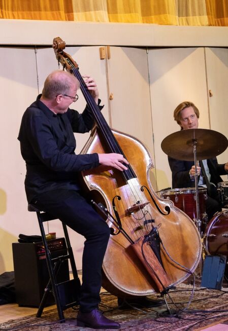 En gång syntes att basisten Josef log åt trumslagaren föranlett av ett, som jag uppfattade det, oförberett infall av Edlund som fick feeling. Kul! Vi undfägnades ett par kortare underhållande solon från trions batterist, en improvisation plus ett basintro från Josef. I övrigt utmärktes konserten av dess sammanhållande karaktär där virtuosa solon valts bort. Virtuositet kunde istället urskiljas i deras sömlösa samspel, jämte i flera abrupta slut som denna treenighet synkade fullständigt (obegripligt beteende för oss icke-musiker). MMM var verkligen extra taggade efter den långa ofrivilliga konsertuppehållet. Tog enligt kapellmästare Fabian chansen att testa nytt material, jämte lite annorlunda arr på äldre hits.