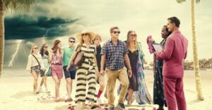 En grupp människor står tätt sammanpressade inom en rektangel, mitt på scenen. Det finns inga väggar som stänger in dem. De kan ändå inte ta sig därifrån, och vet inte heller varför de befinner sig där.