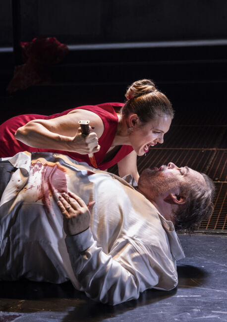 Som sedvanligt har regissören Eirik Stubø skalat av och stiliserat dramat och det framstår i ett förklarat närmast sakralt ljus. Även scenografin är avskalad och rekvisitan spartansk – ett bord, några stolar, en liten målning, enkla blomster och givetvis en vass blänkande kniv.