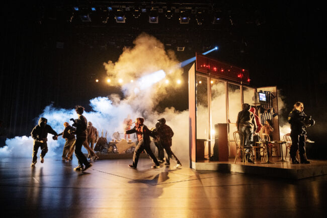 Ska påpekas omgående att jag såg föreställningen i lördags (18/4) då det var i det närmaste fullsatt. Tidigt in i den inträffade en anmärkningsvärd incident utan att påverka fortsättningen. En äldre man blev nämligen så förvirrad över att hans påslagna mobil ringde flera gånger, att en ur ensemblen bröt fiktionen och efter förfrågan lät någon backstage förvara telefonen, för att returnera den till handfallne individen efteråt. Ashkan Ghods fick ett gyllene tillfälle att påminna oss om att teaterbesök är livekultur. Borde förstås publicerat följande värderande reflektioner för flera dagar sedan. Skyller i vanlig ordning på skrivkramp jämte uppdrag vilka legat före i pipeline.
