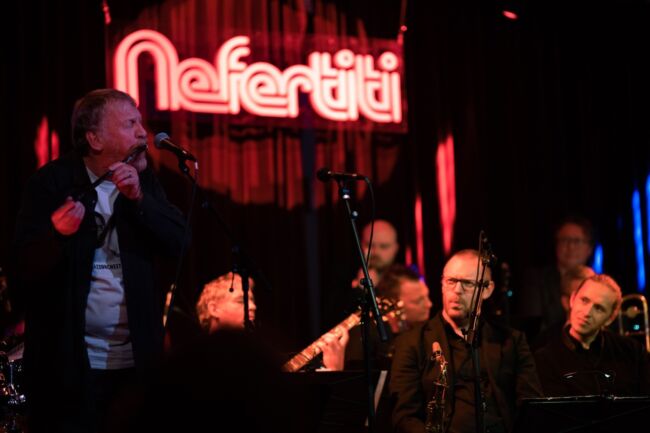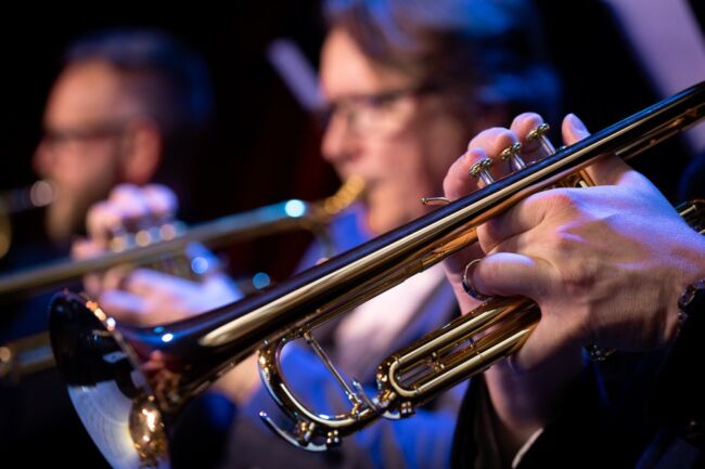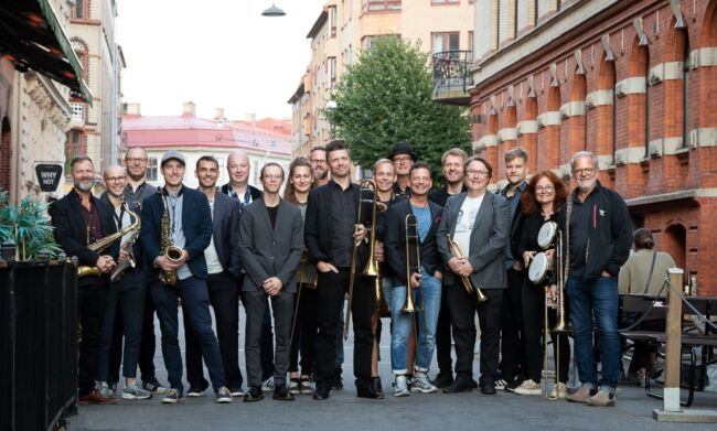 Bistert väder, närmare bestämt regnrusk. Men inomhus spreds musikalisk värme, trivsel och många skratt när storbandsscenens nya flaggskepp förtöjdes för ett par timmar, vid scenen inne på Valand i sällskap av den smått legendariske mångsysslaren Tomas von Brömssen. Under pandemin samarbetade de för första gången, vilket resulterade i mycket lyckad konsert för tillåtna femtio lyckliga själar på Brewhouse. P2 (Jazzradion) fanns på plats och spelade in vars highlights hamnade på utsökt skiva. Omkring etthundra personer fyllde Valand, övervägande sittande publik. Medelåldern på de som lockats av kombinationen Brömssen och högkvalitativ jazzorkester var hög. Föreställningen pågick i ett svep under närmare två timmar. Tillfredsställande ljud, även om Tomas von Brömssens mikrofon kunde ha fått aningens högre volym när han drog sina underhållande anekdoter.