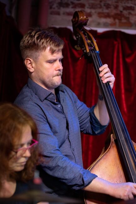 Vet inte om ljudtekniker medvetet skruvat upp volymen på Olli Rantalas kontrabas. Så kan ha varit fallet för att få till avsett schwung, särskilt i de folkloristiska inslagen. Var hur som helst en fröjd att höra honom i helfigur, inte minst i teamwork med briljante percussionsten Michael Andersson som också hade en framträdande roll.
