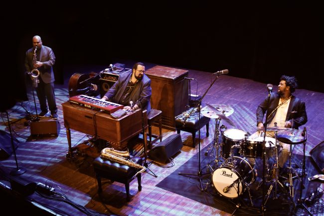 MOZDZER -DANIELSSON -FRESCU verkar inom liknande koncept som Mare Nostrum, fast med annorlunda sättning. Deras excentriske talesperson Leszek Mozdzer från Polen (accent ovanpå z) finns bakom flygeln, medan basisten Lars Danielsson står närmast och i ytterposition israeliske Zohar Frescu på slagverk. Den sistnämnde en pionjär på tretusenåriga trumman tof miriam. I ett synnerligen framgångsrikt samarbete som startade 2004 kombinerar man sin kunskap om klassisk musik med halsbrytande world music vibbar och lyrist inriktad ECM-jazz. Deras oefterhärmliga mix letar sig in i publikens innersta vrår, genom sin hypnotiska påverkan. Vi njuter av innehållet i titlar som Easy Money, Enjoy The Silence, Polska och Suffering. I sist nämnda låt byter Danielsson effektfullt till basfiol. Trion kreerar ett fridfullt meditativt tillstånd,vilket bryts av i några mellanrum av en sprallig ”filosof” sittandes barfota vid pianot. Ypperlig akustik gör rättvisa åt deras ekvilibristiska handlag, ändå förmår de bibehålla det melodiska fundamentet. Vid ett par tillfällen hörs Frescu sjunga ordlöst. Klanger koordineras på ett svindlande sätt med matchande rytmer. Uppseendeväckande spännande livemusik avrundas enligt uppgift av ljuvlig två ackords -låt samt en mycket uppskattad hymn. Vet inte vilka influenser de haft. Själv tänker jag på exempelvis E.S:T Charlie Haden och Trilok Gurtu. Otroligt begåvat och oförglömligt!