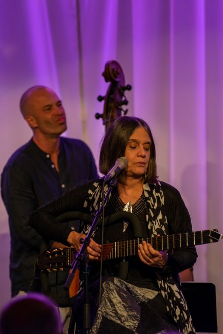 En överlag timid pärla i utbudet levereras av portugisiska CHRISTINA BRANCO och hennes trio ute på Saltsjöbad. Hon sjunger fado med samtidigt passionerad och kontrollerad övertygelse, omgiven av landsmännen Bernardo Couto på gitarr, pianisten Luis Figueiredo och Bernardo Moreira på bas. Rytmer tillhandahålls på olika sätt, bland annat genom att musikerna trampar igång en takt som loopas och några gånger används cajón. 70-talisten har gjort hela femton plattor och influenser kan anas från Billie Holiday och klezmer. Främsta förebilden givetvis Amália Rodrigues! Musikerna tolkar med imponerande precision melodiers komplexitet. Sticker ut mest bland garvade musiker gör eminente ”strängbändaren” på inhemsk gitarr. Branco förtäljer hur underligt det känns att framföra fados mitt på dagen och att materialet huvudsakligen hämtas från senaste alstret Branco, producerad av trion på scen. Konserten har karismatisk prägel, inlevelsen och kunnandet är påtagligt. Mjukt sound skiftar ibland till spetsigt, många känslor är i omlopp. I ett tangodoftande stycke garnerat med schwung växlar Figueiredo mellan minisynt och flygel. Hade faktiskt önskat något fler instrumentala stick. Kan bero på bristande kännedom om genren, att jag skönjer en viss konformism. Dock, efter att gett oss en anekdot utan tillräcklig mikrofonteknik, sker omslag till en snärtig låt. Med vädjande tonfall, stolt närvaro, pricksäker intonation och glimten i ögat, betvingar Branco åhörarna, vilka svarar med stående ovationer.