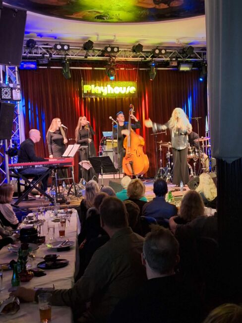 Enligt uppgift har Zaraitis släppt sju skivor i eget namn, sjungit med flera renommerade storband och framträtt på festivaler i USA och i Australien. Lyssnade på smakprov på Youtube för att få en uppfattning om hur denna för mig doldis låter live i mindre sättning. Fick träffa den charmiga damen och medmusikerna efteråt, tog tillfället i akt att namndroppa stjärnor jag recenserat och i vissa fall mött. Ligger nära till hands att jämföra Zuraitis med kollegor, andra sjungande pianister hemmahörande inom jazzens domäner: Sarah McKenzie som sågs på Ystad Jazzfestival och två cross over – storheter jag inte upplevt live. Tänker på Diana Krall och Norah Jones. Likheter finns, men också uppenbara skillnader.