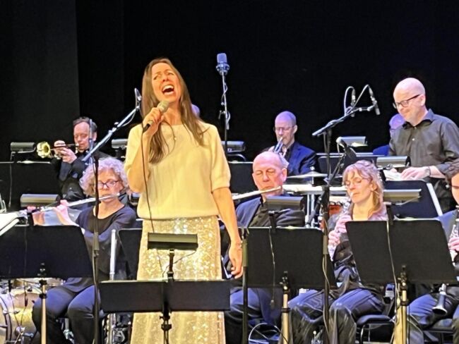 Sitter bra och konstaterar i likhet med den bejublade sångsolisten att ljudteknikern utomordentligt väl får fram hennes stämma, orden och stavelserna når våra öron. Det var bara i ett par sekvenser i början som orkesterns volymstarka sound trängde undan rösten.