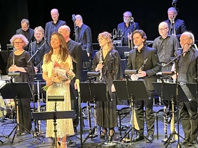 Dirigerade av arrangören Mats Hålling lät de bättre än någonsin vid mitt besök när Peter Asplund stilfullt höll sin releasekonsert. På turnén har orkesterns cirka tjugo medlemmar förstärks med Tommy Kotter på digitalpiano och kontrabasisten Thomas Markusson. Mannen stående på bilden ovanför heter Sven Fridolfsson. Förutom att spela altsaxofon och tvärflöjt (flera solon) agerar han dirigent och ansvarar för nästan samtliga arrangemang. Vilken arbetsinsats!