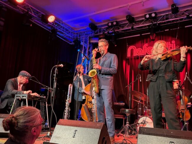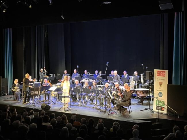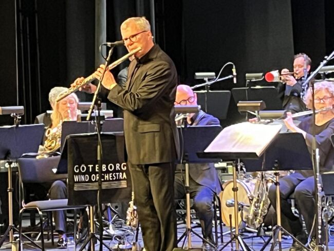 GWO passar givetvis på att erbjuda ett fullsatt Dergårdsteatern vad de inte visste att de skulle få: Ett par instrumentala stycken där de låter oss sjunka in i sina klanger och kvalificerade musicerande. Förutom inledande vackra Värmlandsvisan framförs exempelvis en slags charmig ouvertyr, Valsette av Bengt Hallberg blir till en fullträff genom att få fram stämningen av nordiskt vemod i ljus tappning samt ett exklusivt arr av Mikael Råberg på ytterligare en bossa av Jobim, nämligen Wave som ju annars ofta framförs vokalt med engelsk text. I arret finns feature från trombonsektionen. Apropå solister levererades under konserten ett par prydliga solon på tenorsax av Per Laang.