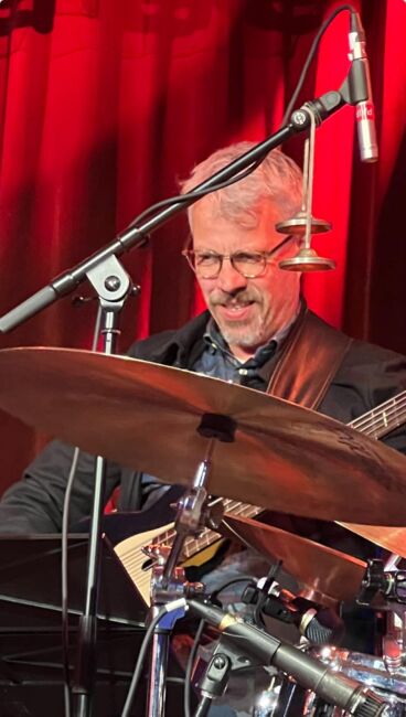 Ny inriktning tar sikte på karnevaliska rytmer i en anda som leder tanken till en hetsigare variant av Yellow Jackets ( hörde kvartetten längst fram på YSJF härom året och de har faktiskt lirat i närtid i Jazzföreningens regi). Elbasen markerar lika odiskutabel som omistlig närvaro och mina anteckningar slår fast att rytmsektionen är av extraordinärt snitt. Blir givetvis härligt upprymd av halsbrytande, furiöst samspel. När stormvinden blåst förbi inträder ett fängslande tillstånd, vars feature logiskt nog emanerar från flygeln. Hjorth glänser med porlande ekvilibristik, interagerar med Egers och Vadsholts uppbrutna rytmer. Sekvensen utvecklas till en superavancerad konversation emellan Anton Eger och Elliot Galvin. När syret riskerar att ta slut på grund av detta omtumlande crescendo blir det efter 45-50 minuter paus.