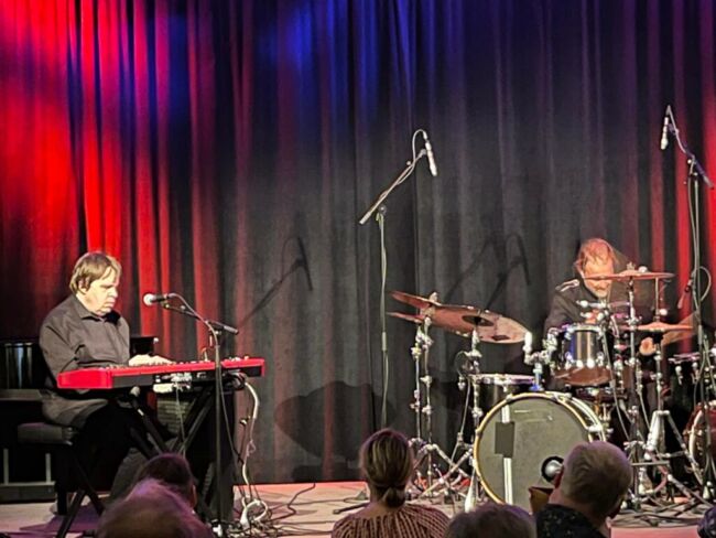 Sfäriskt tungt sound kryddas med aviga takter och experimenterande med halsbrytande teknik. Mats verkligen ut svängarna i medryckande improvisationer. I en uppsjö av musikaliska hyss är det inte alla som etsar sig fast. Ska framhållas att ljudet från Kulturbaren är ytterst fördelaktigt. När duon med sitt intuitiva samspel (sammanstrålade på scen redan när de gick olika årskurs på mellanstadiet) lirar på topp garanteras en ekvilibristisk kombo av harmonier och rytmik. Snarare än reguljära låtar känns musiken jambetonad, vilket uppskattas. Man rör sig emellan det tillgängliga och abstrakta. Extranumret med sitt rejält utflippade avslut leder tanken till banbrytande E,L & P (snart femtio år sedan Keith Emerson gjorde outplånligt intryck på mig i Scandinavium).