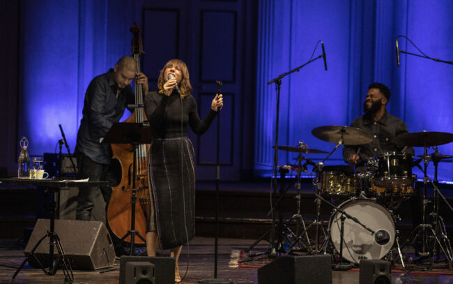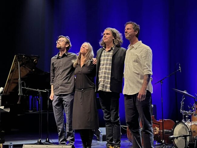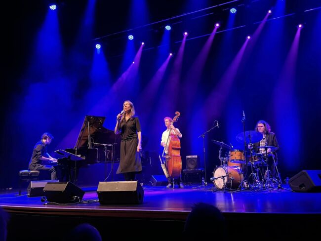 I inledande jazzmarinerade versionen av Big Yellow Taxi, blottas omgående oförställda glädjen i att få brista ut i skönsång inför hängiven publik. Vid flera tillfällen ryser jag av lycka av hur de fyra på scen är lika påslagna. Vokaljazz av absolut ädlaste valör levereras. Flyhänta pianotrion tar chansen att presentera sig på allvar i standardmelodin It Could Happen To You som fått svensk text av Anders Lundin. Man är på tårna när en betagande stämma i världsklass tolkar Cornelis x 2, varav den ena låten är en sprittande suggestiv sak i bluesens frodiga mylla. Jonas Östholm briljerar! När Strövtåg i hembygden framförs känns slitna klyschan ståpäls fullt motiverad. Perfektion, inte tu tal om annat. Noterar makalös svängig energi i originallåt med basist Höper i framskjuten position.
