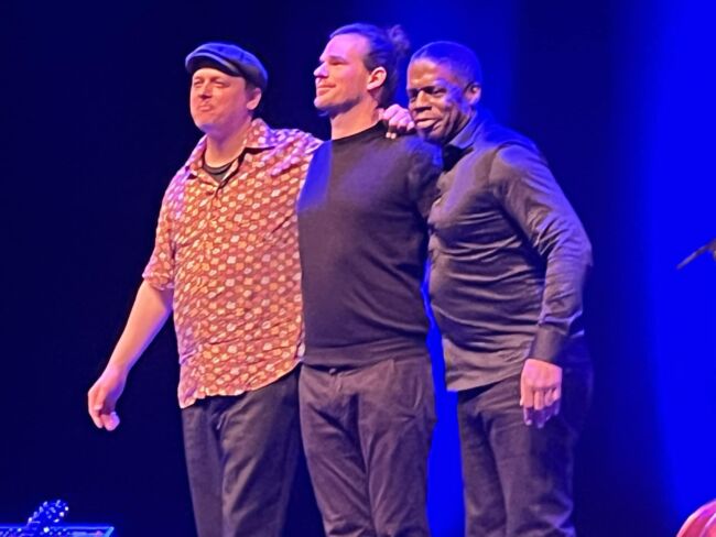 Festivalens mest notabla bokning var amerikanske gitarristen Kurt Rosenwinkel (spelade förvisso i Göteborg i fjol). I princip lika meriterad är trumslagaren i pianolösa trion, nämligen Gregory Hutchinson som spelat med exempelvis Betty Carter, Joshua Redman, Roy Hargrove, Joe Henderson, Ray Brown och Jimmy Smith. På sitt cv har gitarristen med den glimrande tekniken sexton egna album plus att han gästat på otaliga skivor, Han komponerar, undervisar, driver skivbolag och spelar keyboard. I Trollhättan visar den numera i Berlin boende giganten på sitt rödfärgade instrument varför han är en förebild för många aspirerande gitarrister. Avsevärt yngre Lukas Traxel från Schweiz kompletterar på kontrabas.