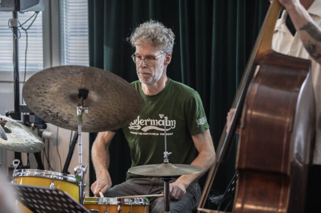 Enstaka original vävs in i låtlistan där kompositörerna är bland andra Mingus, Joe Henderson och A. C Jobim. Sist nämnda kompositör kan härledas kulturellt efter några minuter, då brasilianska temat elegant bryter igenom. Avslutande standard i snabbt tempo känns så väl igen. Den kryddas av en exalterande show på hårt spända trumskinn. Basisten sköter sig oklanderligt i bakgrunden, omgiven av två storheter vars nivå inbjuder till ironi från kollegor. De vitsigt lagda skulle framföra kommentaren ”onödigt bra”. Äntligen har jag sett denna omsusade gitarrist spela. Inser att Kurt Rosenwinkel är otroligt skicklig. Men konstaterar att han i motsats till äldre passionerade gardet – Scofield, Stern, Metheny – inte riktigt är min bag,