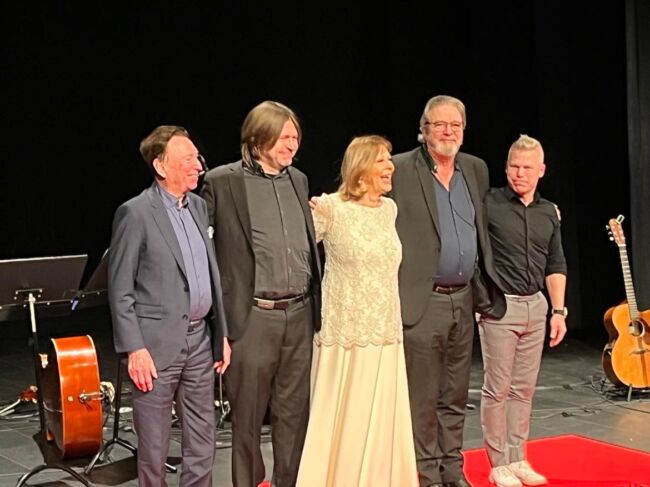 Trots utförlig recension har inte allt innehåll” ”redovisats”. En omständighet som inte kan förbigås är att Mats Norrefalk, den pensionerade lektorn som superbt och exakt avvägt trakterar tre gitarrer, muntrar upp artisten och oss genom att sjunga duett, alternativt ta egna vokala initiativ. Kul och oväntat! Lill Lindfors teatrala och humoristiska sida framhävs underhållande i både monologer och låtar. En dylik höjdpunkt är förstås hennes Ägget med ekvilibristisk tillförsel av Norrefalk. En annan är virtuost samstämmiga, tangodoftande rytmer vilka bär fram En sån karl/ En man i byrån. Bägge sångerna föregås av sammanlänkande mellansnack av yppersta snitt. Skämtsamma tonen understryks på begäran av entertainerns höghastighetsversion av Robban Brobergs Mitt lilla fejs. Lill Lindfors och hennes eminenta medmusikanter infriar till fullo förväntningarna på den fullsatta Dergårdsteatern.