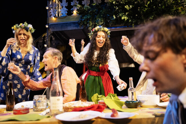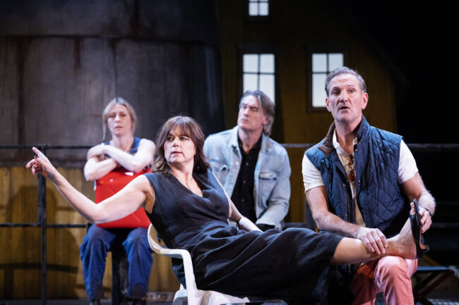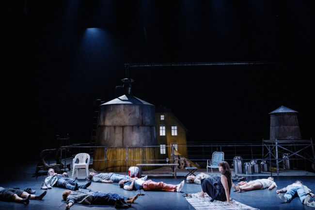 Omväxlande scenografin med dess genomskärning av bondgården och hur den belyses av sommarens ljus kontra skuggor tillhör uppsättningens tillgångar. Förvisso bör det anmärkas på sista aktens minst sagt gåtfulla symbolik. Synkade koreografin måste också framhävas. Från öppningsscenens imiterande av råmande kossor till hur människoskocken beter sig i festligt koordinerade rörelser. Ett annat mer dominerande inslag är den karaoke somliga närmast frossar i under rusets inverkan. Minns inte längre vem som sjunger Bohemian Rhapsody, kommer däremot ihåg att Hayes vällustigt stuffar iväg på Dancing On My Own medan Stegmars rollfigur framstår som en tönt när han tar ton i Forever Young.