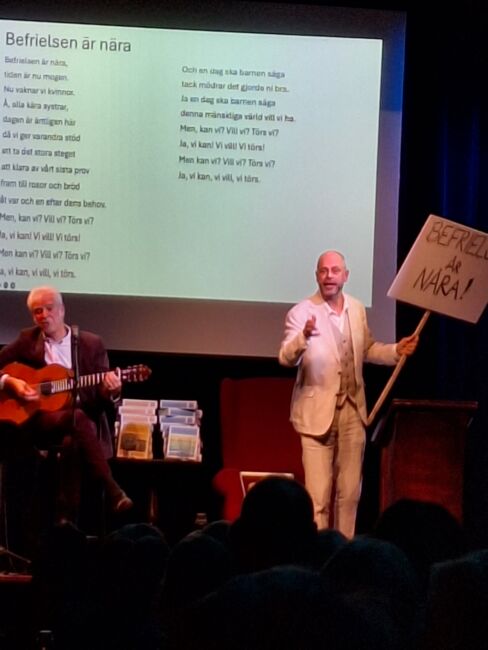 Ett undantag från tesen om att en slags kronologi följs infaller i slutet då strof av Birger Sjöberg inkluderats. Sker när ämnet är döden och paras ihop med vad de kallar trotset. Publiken hänförs av annorlunda ingång på den fullkomligt betagande sången Din stund på jorden av Laleh, vars unika drabbande estetik uppstod under uppväxten i Angered. Och när man påminns om låtens bakgrund berörs man desto mer. Kan flika in att jag recenserade den första av de två dokumentärerna om Laleh när den premiärvisades i Hammarkullen och var på plats på Götaplatsen, alldeles utanför där vi sitter när hon frontade egna bandet och GSO. Allra sist lanseras som nämnts vår mest kända vaggsång. Således ett exempel på synnerligen gedigen och omväxlande Lunchteater i musiklyrikens tecken.