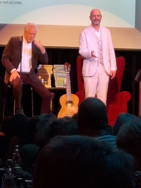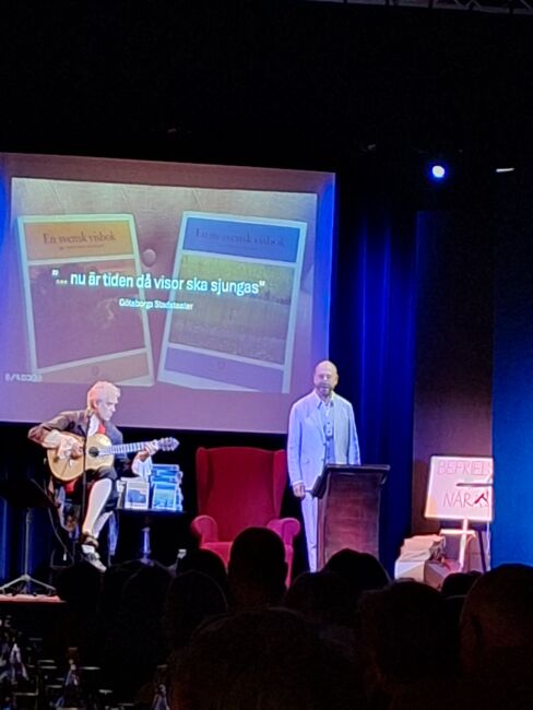 Både den historiska föregångaren och nämnda moderna utgåva presenteras i ord och ton. när man Redogörs åskådligt för visans funktioner. Blev en som väntat stimulerande exposé med två ytterst kunniga herrar. Säcken av väsentliga alster knyts klokt samman med vaggvisor, varav Byssan lull lagts som final. Utan att veta om duon umgås privat kan fastslås att de känner varandra utan och innan, åtminstone på professionell grund likt Hasse & Tage eller Magnus och Brasse. Missade tyvärr när de båtluffade i Bohuslän med liknande visprogram. David sjunger emellanåt fast mestadels ägnar han sig åt att berätta om forskningen kring svensk visa, något han kryddar genom att involvera publiken i mer än förväntad allsång. Kazoo-momentet blir till en oförutsägbar muntration.