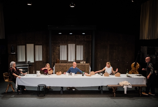 Scenen domineras av ett långbord. Där ska nämligen dukas upp till födelsedagsfirande. Kristin fyller år och båda sönerna ska komma med sina flickvänner. När det gäller Peters flickvän, Trudi (spelas av Frida Hallgren) är det första gången Kristin träffar henne. Trudi är en pigg, positiv ung kvinna fylld av förväntan och rent av är hon uppspelt av att få träffa den berömda Kristin. Det är ett möte som blir väldigt intressant, en bit in i pjäsen avslöjas att Trudi och Peter träffades på ett bönemöte, i en kristen församling. Kristin blir lätt chockad: hennes ena son fast i religiositet? Fast ännu värre tycker Kristin det är med Claire (spelas av Cecilia Frode), flickvän till Simon, den andre sonen. Claire är skådespelerska och tjänar bra på en roll i vad Kristin kallar en såpa. Om det är en såpa eller en tv-serie av kvalitet, det får vi nog bestämma själva hur vi vill tolka.