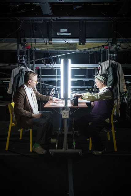 Många plus dessutom till skådespelarna som alla är helt fantastiska. Jonas Karlsson och Johan Ulveson som de två kufarna, luffarna, spelar tillsammans som om de aldrig gjort något annat än varit just där, de två, tillsammans, om och om igen. Torkel Petersson fullkomligt äger scenen som Pozzo. Jag tror inte jag någonsin sett någon spela Pozzo så övertygande. Per Svenssons monolog som Lucky drog kraftiga applåder. Pojken vet jag inte vem som spelade, de finns flera namn i rollistan för den rollen. Men han får högsta betyg han med.